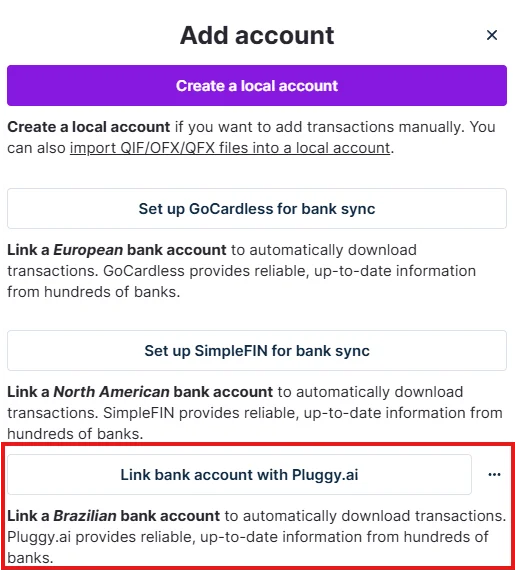 2. Select Link your bank account with Pluggy.ai.