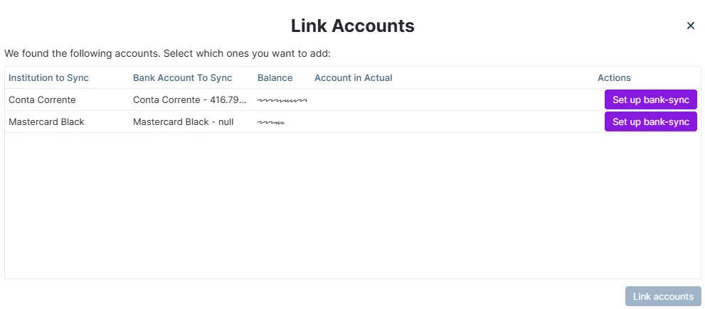 4. Click Set up bank-sync next to the one you want to sync.